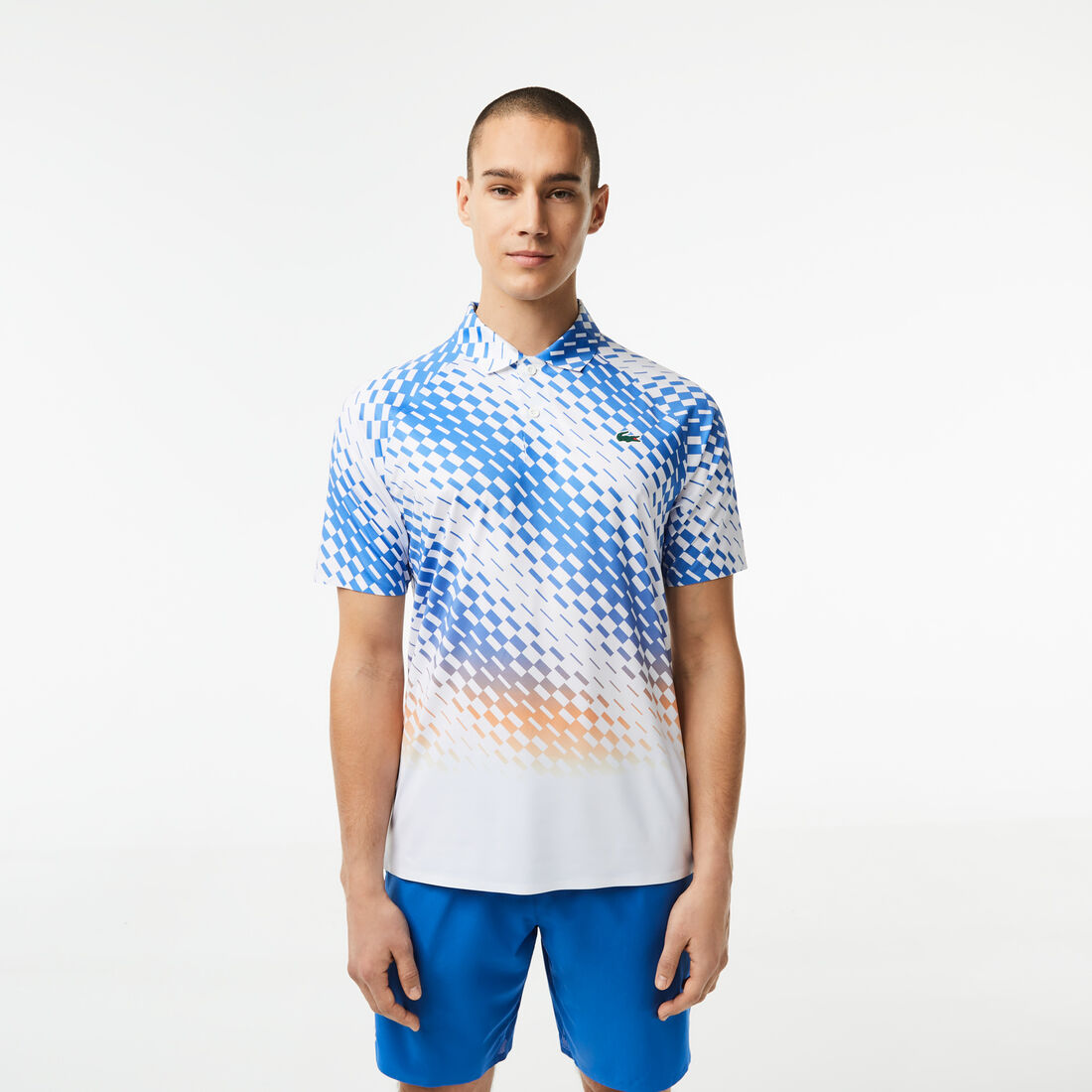 تيشيرت بولو مزين بنقشة مربعات للرجال مجموعة Lacoste Tennis X Novak Djokovic