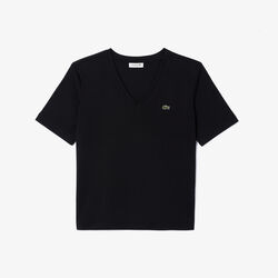 يتميز هذا التيشيرت العصري بتصميمه المنسدلة وأكتافه المنسدلة من قماش جيرسيه قطني مريح: يُعد هذا التيشيرت من لاكوست، ذو الرقبة على شكل حرف V، قطعة كلاسيكية مميزة. مُزين بتطريز التمساح المميز لدينا.