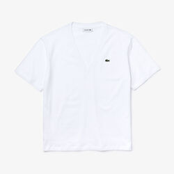 تي شيرت من القطن الفاخر بفتحة رقبة على شكل حرف V للنساء