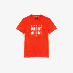 قميص تي-شيرت للرجال لرياضة التنس من الجيرسيه العملي بفتحة رقبة دائرية ومزدان بحروف أنيقة من مجموعة Lacoste Sport