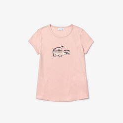 قميص تي-شيرت قطني مطبوع بفتحة رقبة مستديرة للبنات