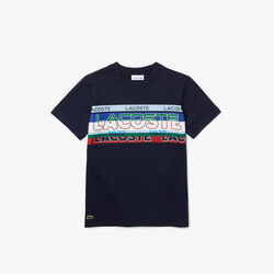 تيشيرت قطن بفتحة رقبة مستديرة وطبعة شعار لاكوست للأولاد