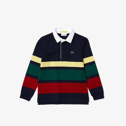 Boys' Lacoste Striped Cotton Rugby Regular Fit Polo